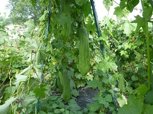 flowers and fruits, some about a foot long already. Only growing a few