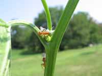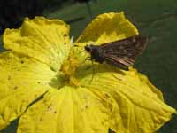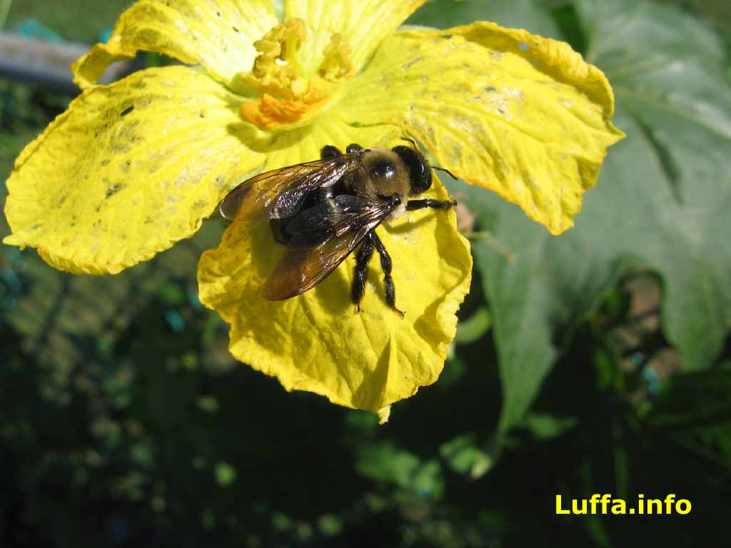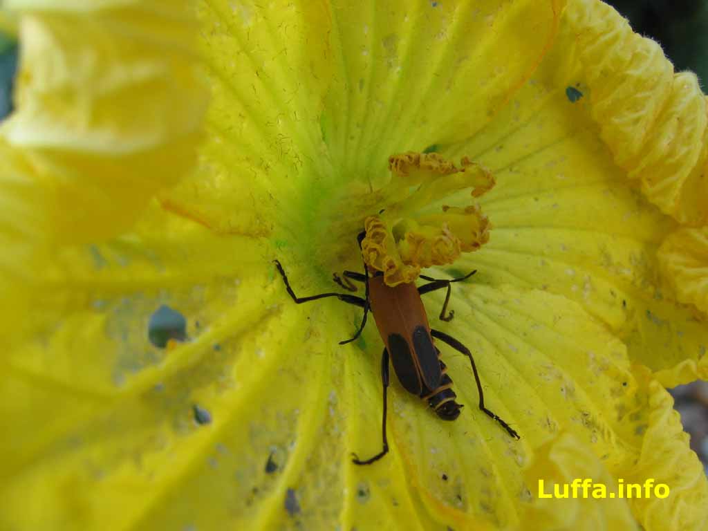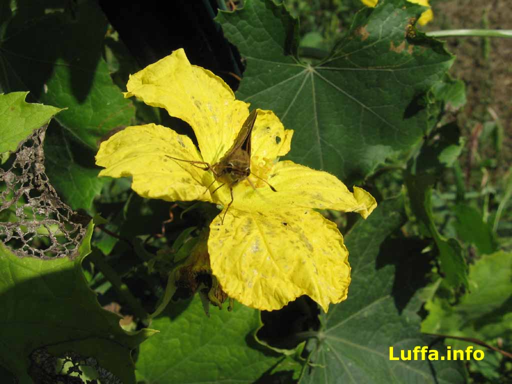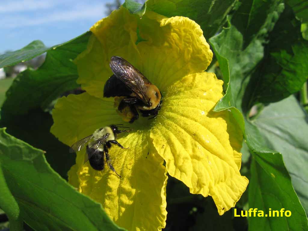 Welcome to the luffa flower garden. Many colorful insects including butterflies and moths visit the blooms. Bumblebees have a special affinity for the large bright yellow luffa flowers. Ants are attracted by small plant structures at the base of flower buds and wander all over the vines. Put some summer sunshine on your screen by viewing these photos of luffa pollinators at work. Click to view.